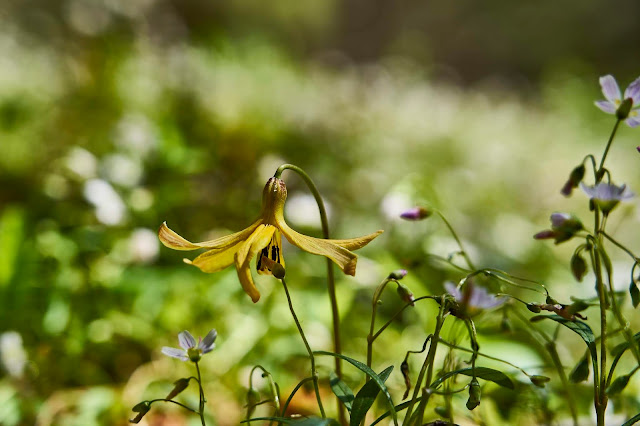 About this point, I passed through a plateau that was covered with trilliums. I took some photos and as I started to move down the trail, I caught motion out of the corner of my eye. I turned and saw a coyote and then I heard yipping/whimpering farther down the hill. The coyote looked at me and started to go past towards the noise and then panicked and ran up the hill away from my and what I assume was her litter. I left the area and her alone. I have heard coyotes at night in the park, but never seen one. I wish she had paused a moment so I could get a photo.