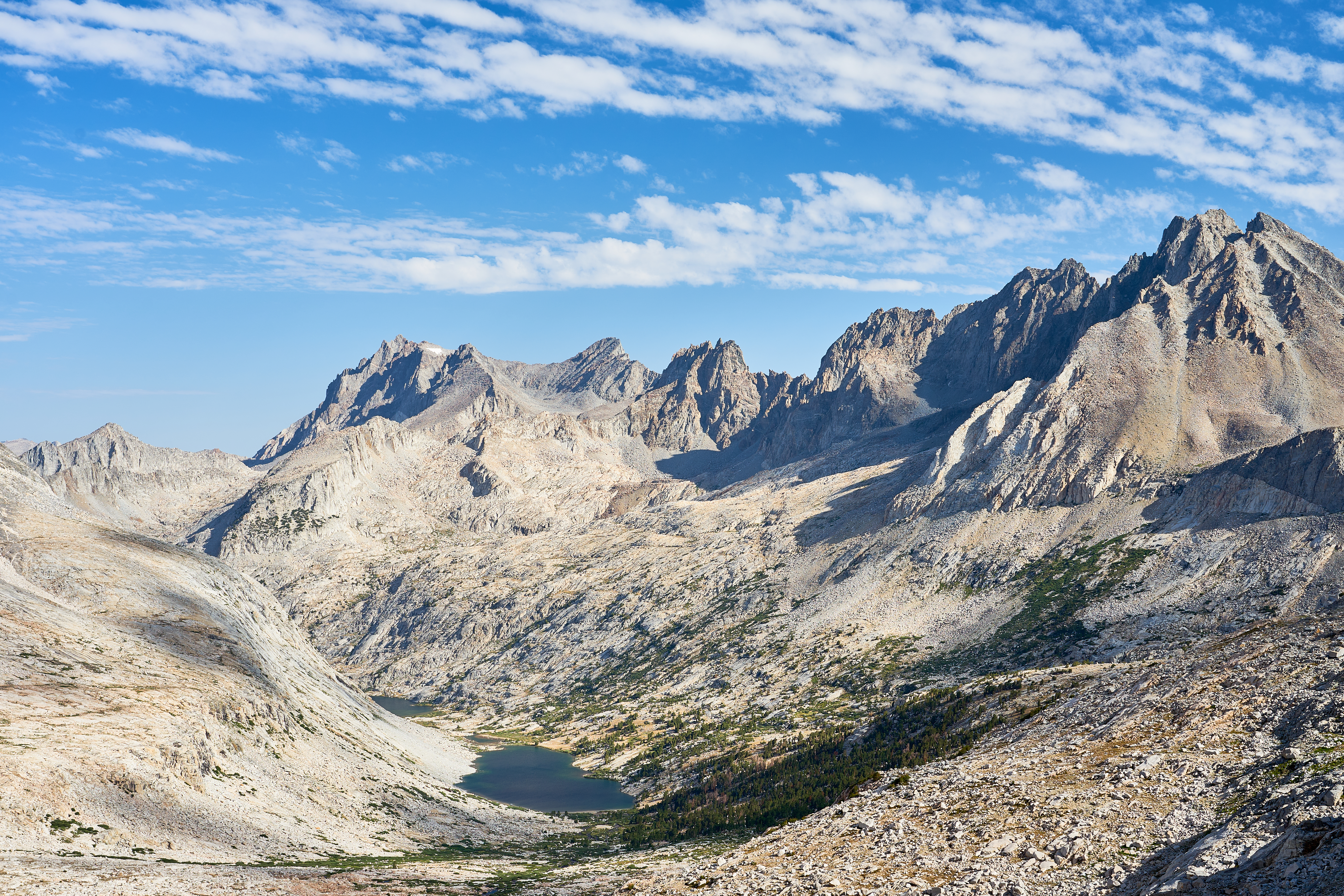 Time for some off-trail exploration. Climbing to Cirque Pass and looking down at the lower Palisade Lake and Mather Pass in the distance. I put my camera in my pack after this since there was going to be some scrambling to get to Cirque Pass.